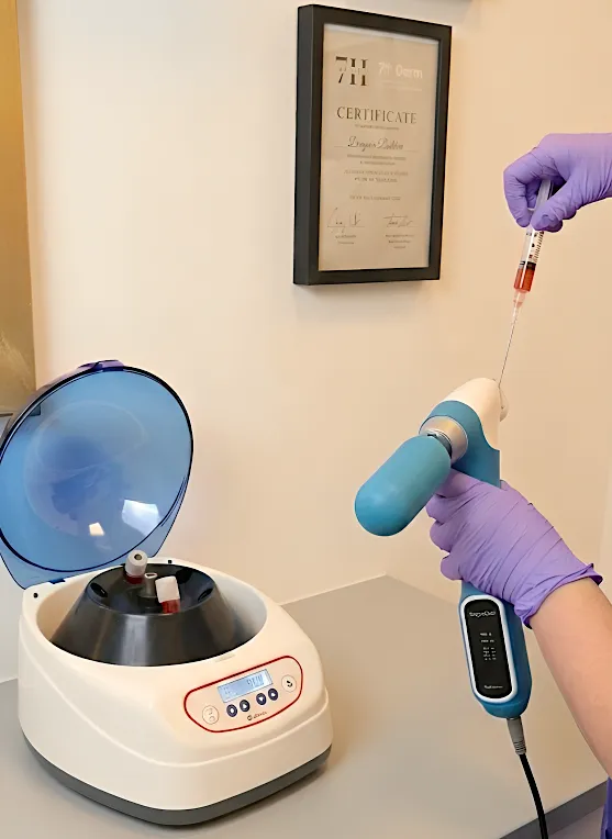 PRP (Platelet-Rich Plasma), som utvinns från ditt eget blod, tillför tillväxtfaktorer som stödjer hudens naturliga förnyelse och återhämtning.